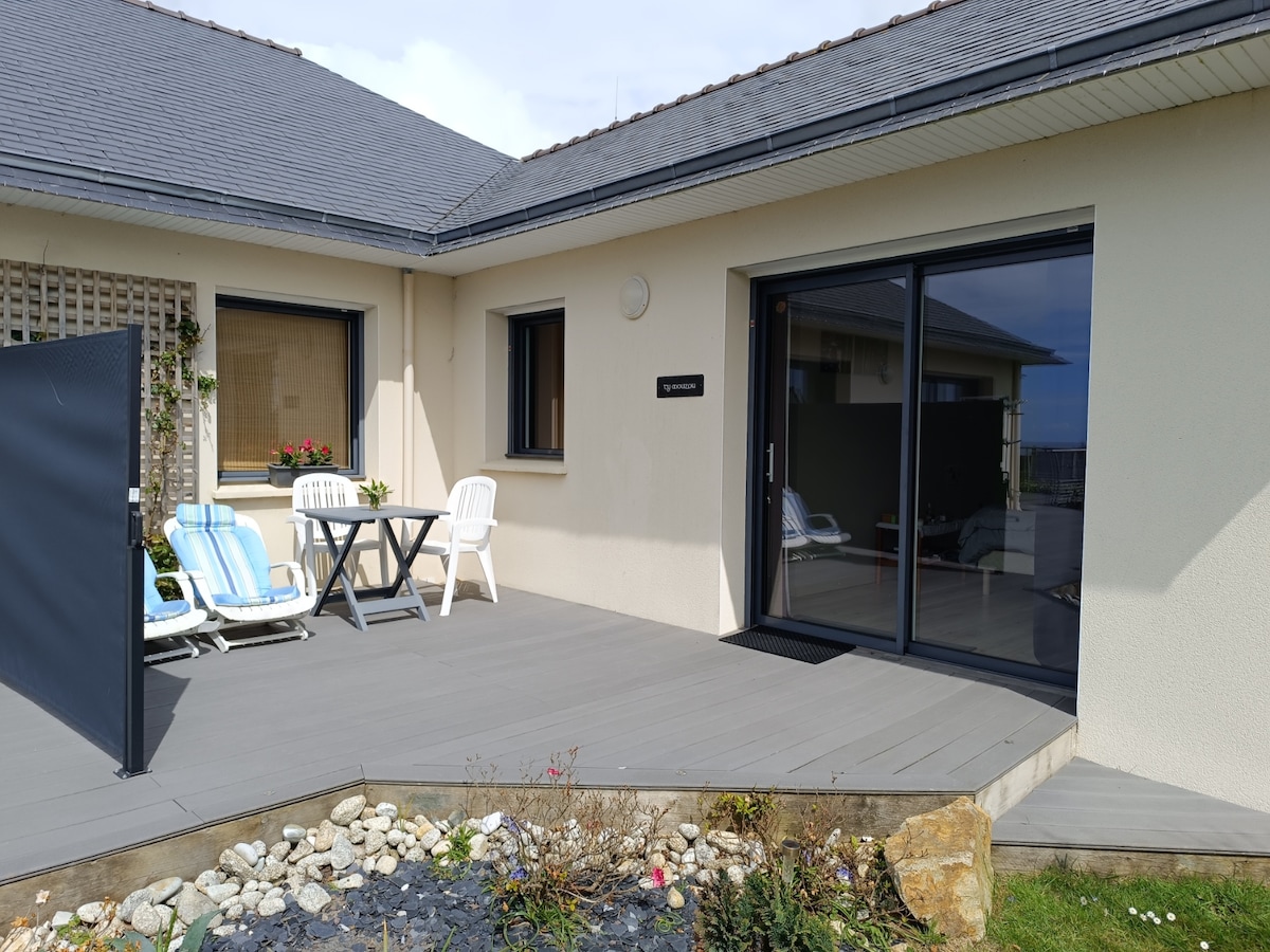 Kom en ontspan als een stel, met familie of vrienden in ons warme 'Ouessant' -huisje gelegen op het platteland, in de buurt van een paardensportcentrum, dicht bij de omliggende stranden (toegang te voet binnen 5 minuten). Dit huisje bestaat uit twee slaapkamers, een met twee eenpersoonsbedden en een tweede met een tweepersoonsbed, heeft alle nodige comfort om een aangenaam verblijf te hebben: badkamer, 2 toiletten, keuken open naar een woonkamer en een eigen terras.
