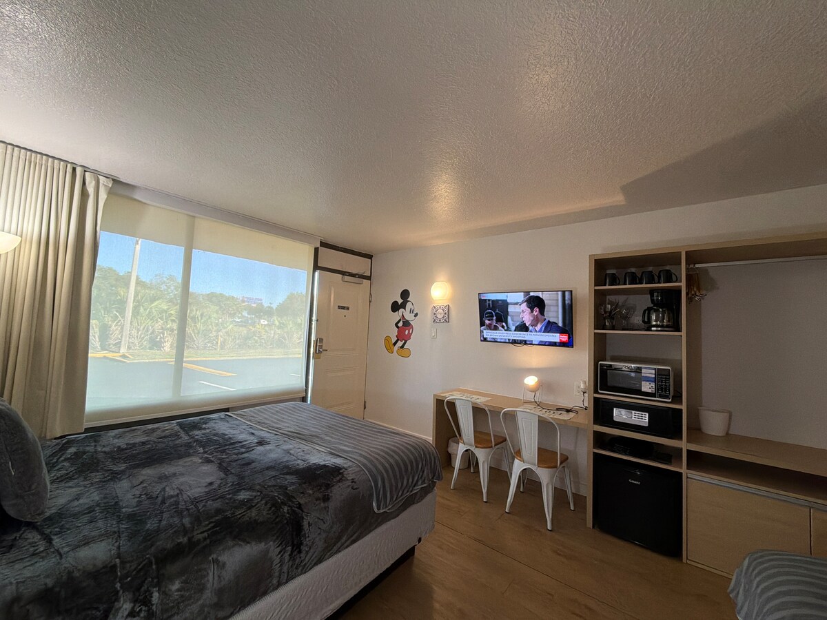 Un espacio sencillo y limpio de 28 metros cuadrados con cubertería completa para comidas ligeras (no hay fregadero exclusivo; se usa el lavamanos y se proporciona detergente y una esponja). Está muy bien ubicado y cuenta con piscina abierta desde el amanecer hasta el atardecer. Hay una zona de fumadores, un amplio jardín y amplio aparcamiento. Traslado gratuito a los parques da Disney en el ❤️ de Kissimmee.