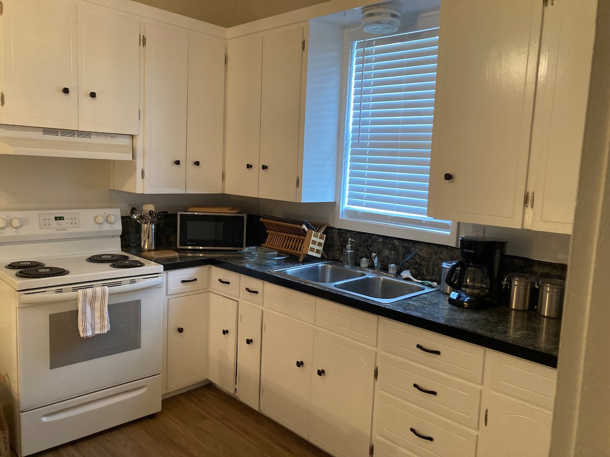 Geïnspireerd door onze liefde voor de stranden van Oregon en de Cascade Mountains (beide binnen 1 uur) biedt dit comfortabele huis alles wat je nodig hebt voor je avontuur in Oregon. Drie kamers (één kingsize, twee queensize) met twee volledige badkamers (inclusief biologische zeep), een klein kantoor, wifi, volledig gevulde keuken (biologisch ontbijt en snacks), eigen achtertuin met overdekte patio, gasbarbecue, vuurtafel en S'mores-kit. Wasmachine/droger met alle natuurlijke wasmiddel. Garage om je buitenuitrusting veilig op te bergen.