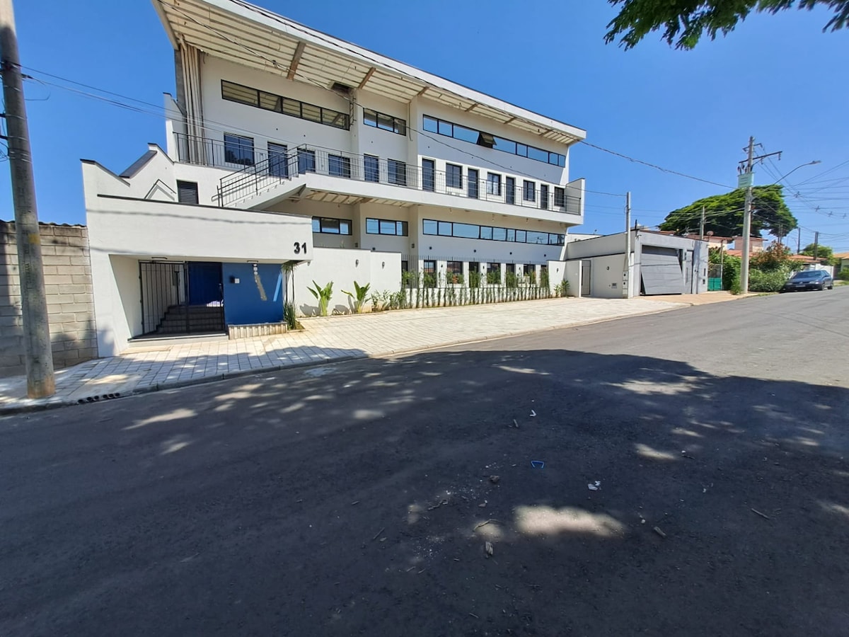 Studio in huis geblazen, in een condo afgesloten voor het Polo-winkelcentrum en dicht bij 4 groothandelaren, gelegen in een compleet commercieel gebied, met bankapotheken, bakkerijen, waardoor de auto in de garage kan staan en kan genieten van de geweldige locatie. Met toegang tot 100 meter van de snelweg Santos Dummont, op 300 meter van de industriële wijk en op 15 minuten van de internationale luchthaven Viracopos.
