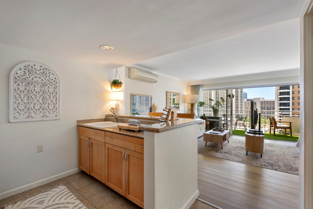 Uitzicht op de oceaan en de kust! Handige studio bij de ingang van Waikiki. Korte wandelingen naar wereldberoemde Waikiki stranden en lagunes; Hilton Hawaiian Village waar elke vrijdagavond vuurwerk brandde; 's werelds grootste openlucht winkelcentrum: Ala Moana winkelcentrum met gratis dagelijkse live Hawaiiaanse muziek en shows; Hawaii Convention Center; en vele restaurants en activiteiten. Keuken met kwarts aanrecht, veilig en snel inductiekookplaat. Comfortabel kingsize bed, bureau, gratis toegewezen parkeergelegenheid.