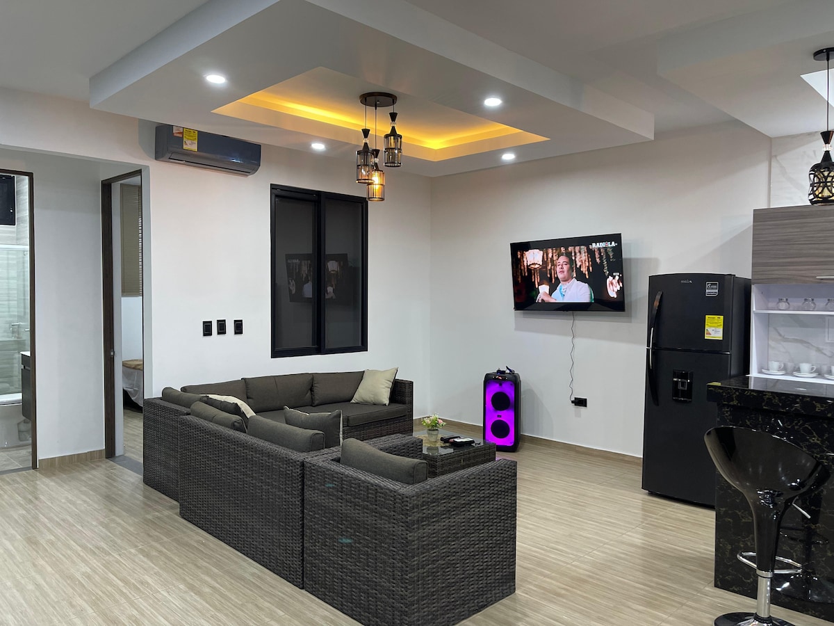 Modern en comfortabel appartement, met uitgeruste keuken, airconditioning en snelle wifi. Veilige, rustige en centrale ruimte, ideaal om te rusten of te werken in Villavicencio. Binnen het pand is er een plek om motorfietsen op te slaan zonder extra kosten. Als overheidsregel vragen we om een foto van het legitimatiebewijs voor verplichte gastregistratie. VIVA-winkelcentrum op minder dan 1 km afstand en winkels of drogisterijen op 2 straten verderop. Snelle toegang tot vervoer en diensten, eigen ingang met slim slot