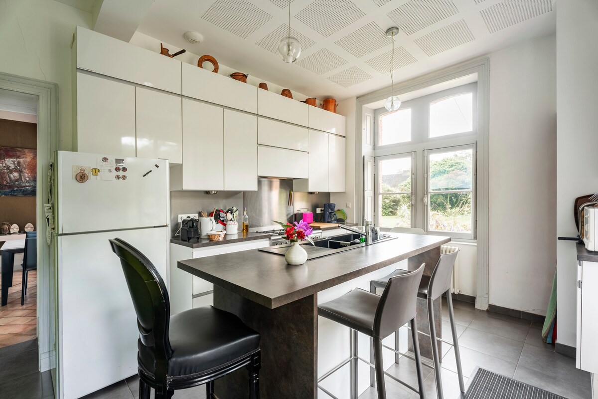Charmant appartement gelegen in een oud herenhuis, genesteld in een rustige woonwijk. Verscholen onder het dak (op de 3e verdieping zonder lift), beschikt het over alle voorzieningen (badkamer, toilet, kitchenette) en een eigen ingang. Deze lichte en rustgevende ruimte baadt in natuurlijk licht en biedt een warme en gastvrije sfeer, met comfortabele meubels, harmonieuze tinten en is kindvriendelijk.