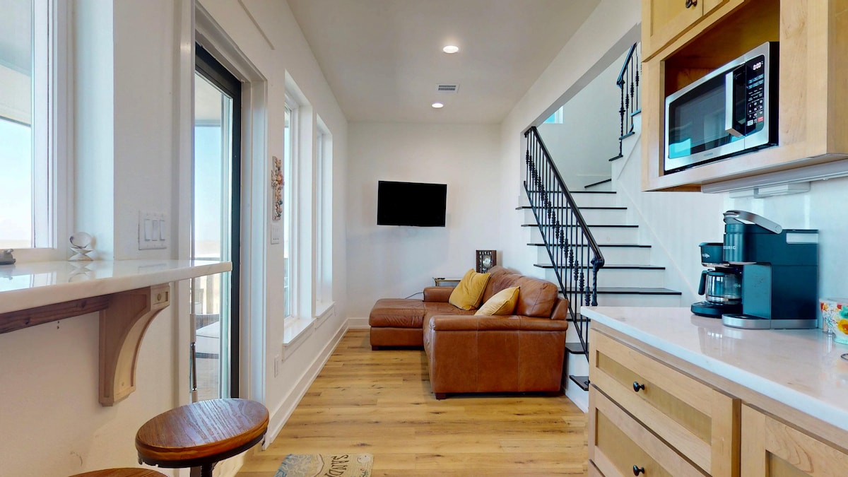 Dit appartement aan het water ligt in Pleasure Island Marina en biedt een prachtig uitzicht en gemakkelijke toegang tot Sabine Lake. De unit op de derde verdieping, met lift, is geschikt voor vier personen. De slaapkamer heeft een queensize bed en een halbad, terwijl de woonkamer is voorzien van een queensize slaapbank, verduisteringsgordijnen en een 75-inch smart-tv met wifi en kabel. De keuken is voorzien van een eethoek, aanrechtstoelen en een werkruimte met stopcontacten. Ontspan op het eigen balkon met zitplaatsen op barhoogte en een adembenemend uitzicht op de jachthaven!