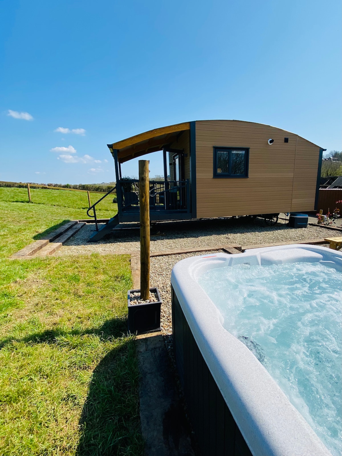 Houten huisje en hottub in Pembrokeshire @littlesladefarm