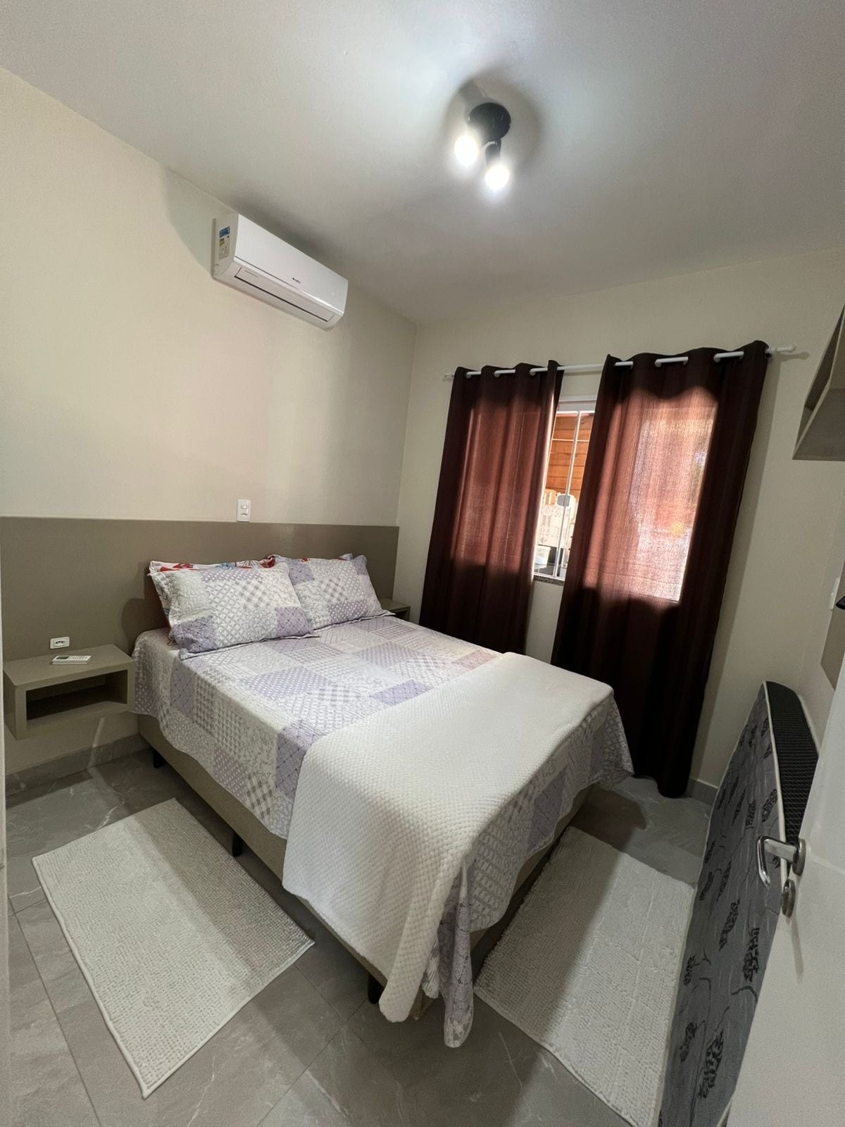 Een plek in contact met de natuur en uitzicht op zee op 400 meter van het strand. Rustig en veilig waar het mogelijk is om wakker te worden met het gezang van vogels. Het huis heeft een tweepersoonssuite met 1 slaapkamer, een woonkamer en een keuken met een slaapbank voor twee personen, een smart-tv, een plafondventilator en een airconditioning. Het heeft een balkon met een barbecue en een prachtig uitzicht op de zee en het eiland Porto Belo. Het heeft parkeergelegenheid/ruimte voor 1 auto voor de chalets.