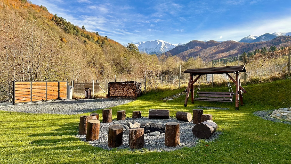 Dit kleine chalet in tiny-house-stijl ligt in de buurt van het bos, aan de hoofdweg naar de Negoiu-piek, de op een na grootste berg in Roemenië, en is de beste optie voor een gezellig romantisch toevluchtsoord in de natuur. Binnen vind je gloednieuw luxe meubilair en voorzieningen. De grote ramen overspoelen je leefruimte met natuurlijk licht en de gordijnen zorgen voor voldoende schaduw voor het geval je het licht niet leuk vindt. Buiten is er een open haard vanwaar je de bergtoppen kunt bewonderen.
