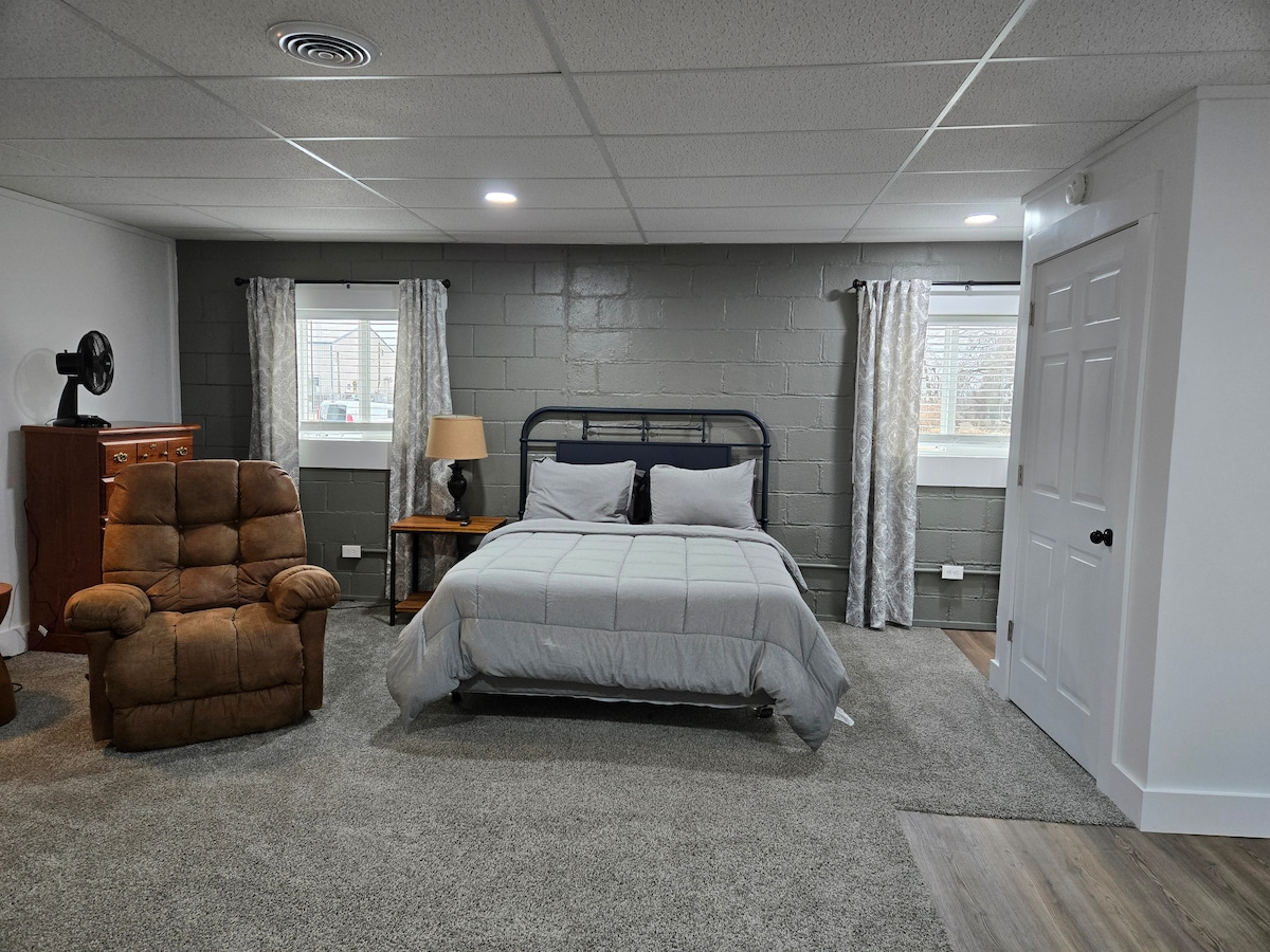Centrally located near Mt Vernon High School. Sleeps five. The whole group will enjoy space to spread out and be active both indoors and out. The two bedrooms have full size beds and room darkening shades. There is a love seat with a single pullout bed in sunroom along with a piano, a ukulele, and a turntable with vintage LP’s. Fully equipped kitchen. Finished basement with additional tv area, ping pong, Pac-Man arcade, games and more. Basement has a washer/dryer and a second bathroom.