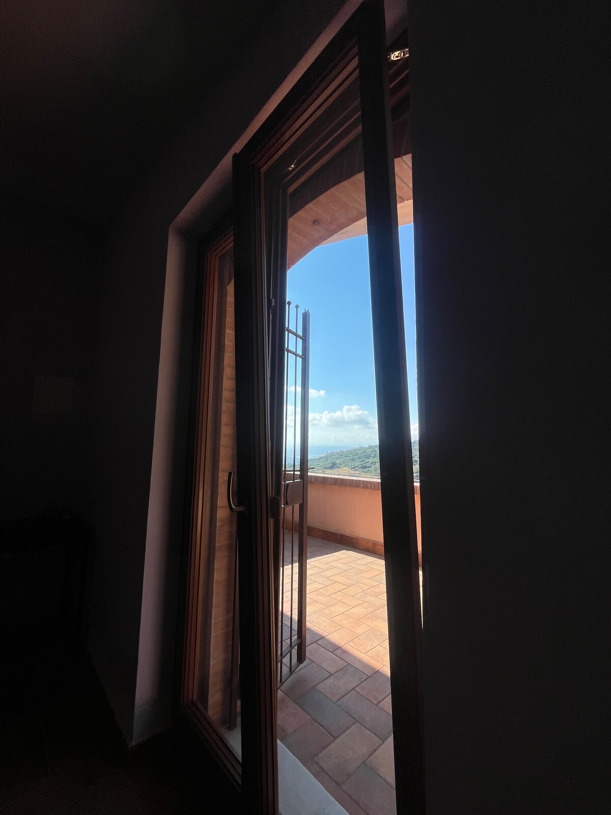 Kamer VI van de Orologio Bed & Breakfast heeft een eigen balkon met uitzicht op zee.