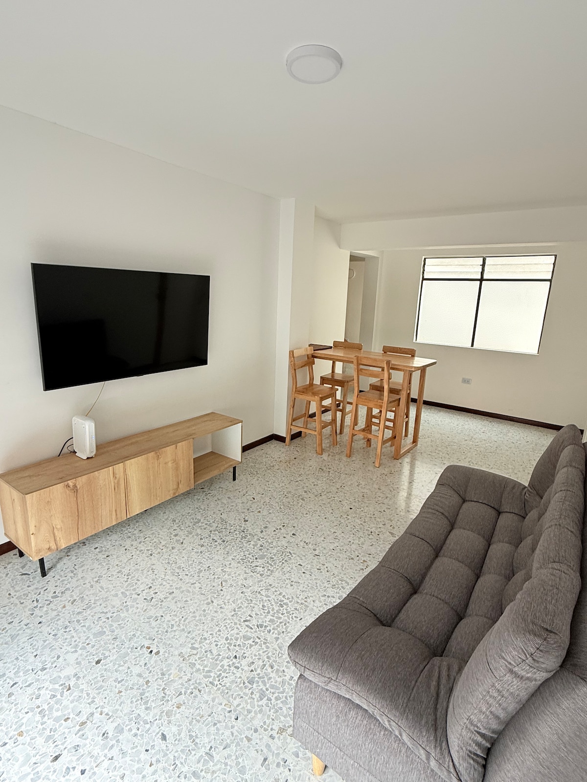 Ervaar eigentijds comfort in ons Laureles-retraite! Deze Airbnb beschikt over moderne afwerkingen, airco en snelle wifi voor een naadloos verblijf. Geniet van het gemak van twee volledige badkamers en ontspan in de stijlvolle woonkamer met een 60-inch tv-scherm. Trek je terug in de gezellige slaapkamer voor een goede nachtrust. Verhoog je verblijf in Medellin bij deze chique en technisch onderlegde accommodatie. Beveilig je reservering nu voor een perfecte mix van stijl en ontspanning!