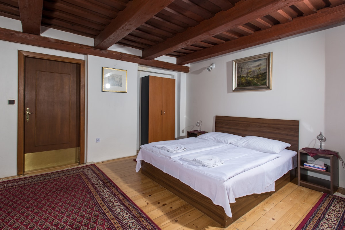 Luxe kamer met dubbele barrièrevrije bed, gelegen op de tweede verdieping van het gebouw, maar nog steeds toegankelijk barrièrevrij. Het is ingericht in klassieke stijl, waarin esthetiek van eeuwen lang voorbijgaat door het comfort van de moderne tijd te ontmoeten. Vooral prachtige houten balken plafond en ingericht parket uit de 18e eeuw zijn je aandacht waard. Het is uitgerust met een eigen badkamer en douchebehuizing aangepast aan de behoeften van mensen met beperkte mobiliteit. Het toevoegen van een extra bed is tegen een vergoeding mogelijk.