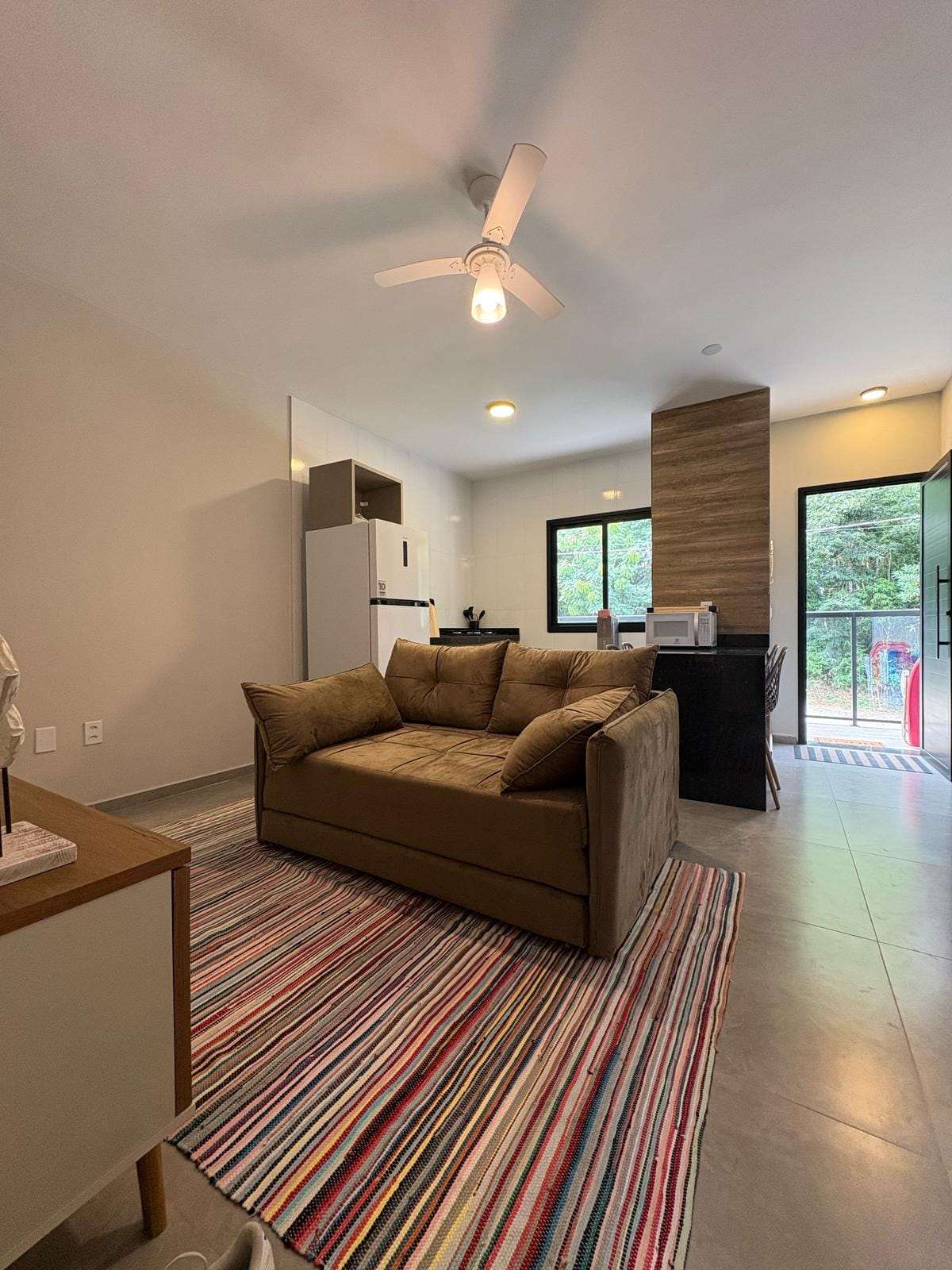 Comfortabele en goed uitgeruste suite voor stel op gedeeld terrein. Het heeft een tweepersoonsbed, tv met Chromecast, ventilator, airconditioning, kast, bed/badlinnen, strandstoelen, koelbox en parasol. Het heeft een balkon met een rustieke keuken. Op het terrein is er gedeelde douche, terras, wasruimte, tuin en Luau ruimte. We liggen op 800 m van het strand van Lagoinha en op 300 m van de ruïnes en watervallen. Er zijn restaurants, ijswinkels en supermarkten in de buurt.