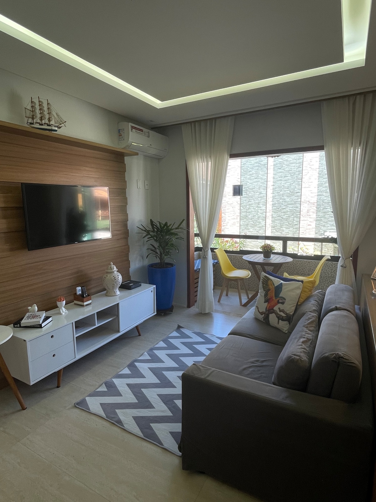 Een appartement op een steenworp afstand van het paradijs, omgeven door kokospalmen en op de beste surfplek van de regio. Op een toplocatie, naast de beroemde Barraca do Lôro en dichtbij supermarkten en restaurants. Stel je voor dat je de dag begint met een ontbijt op het balkon, terwijl de zon opkomt boven de zee, terwijl je de zachte bries voelt en bij zonsondergang ontspant in een hangmat en luistert naar het kabbelende geluid van de golven. Een perfect toevluchtsoord voor wie op zoek is naar energie, rust en de essentie van de kust van Bahia.