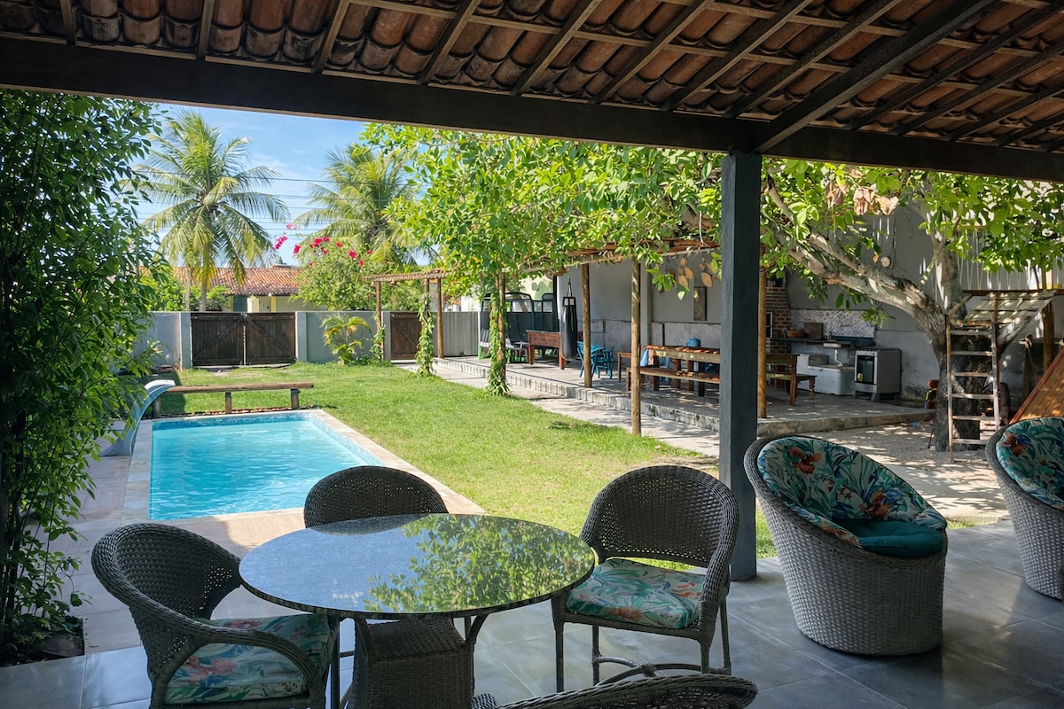 Granente Casa à Beira Mar, met zes slaapkamers (zijnde 04 suites +Dependency suite), Ar-cond. Sociale badkamers, woonkamer, wifi, 02 tv's, SKY, keuken met koelkast , vriezer, brouwerij , magnetron,airfryer, elektrische oven, Gelagua. Recreatiegebied met zwembad, kiosk , barbecue, brouwerij . Behandeld water. Bedlinnen, badhanddoeken voor maximaal 23 personen. Strand met natuurlijke zwembaden, ideaal voor gezinnen, eigen parkeerplaats, medewerker voor het schoonmaken van de buitenruimte.