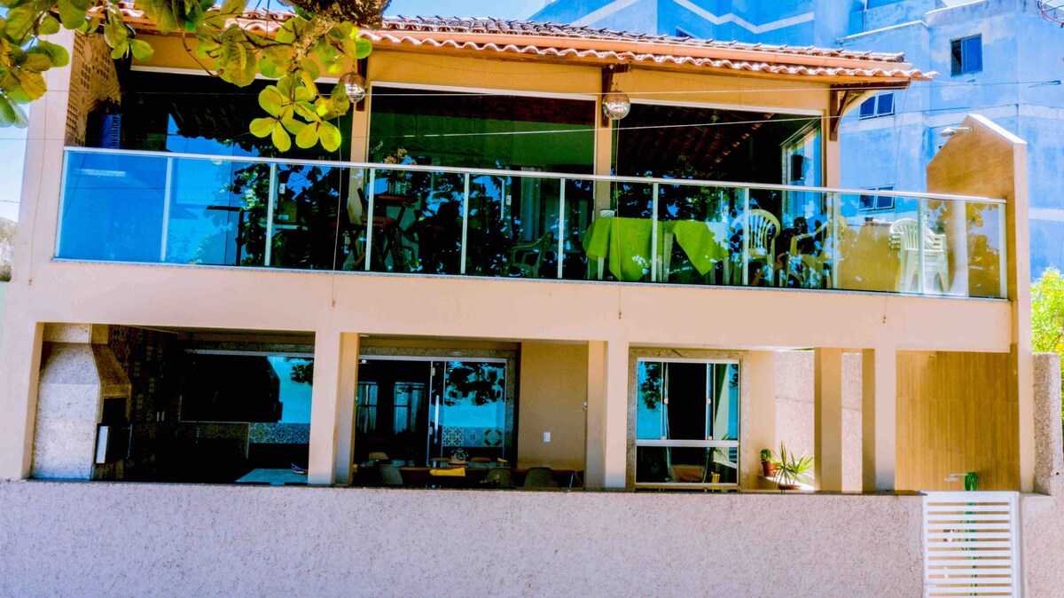 Casa duplex, gelegen op 30 meter van Guanabara Beach met uitzicht op zee. Het heeft 1 suite met airconditioning, 2 slaapkamers met plafondventilator en 2 badkamers, woonkamer, volledige keuken, groot zwembad, barbecue en wasruimte. Het huis heeft een magnetron, Airfryer, mixer, blender, barbecue fornuis en strijkijzer. Kussens zijn voorzien. Toiletpapier en zeep alleen voor de receptie van de gasten, ik maak het niet beschikbaar voor het hele verblijf.