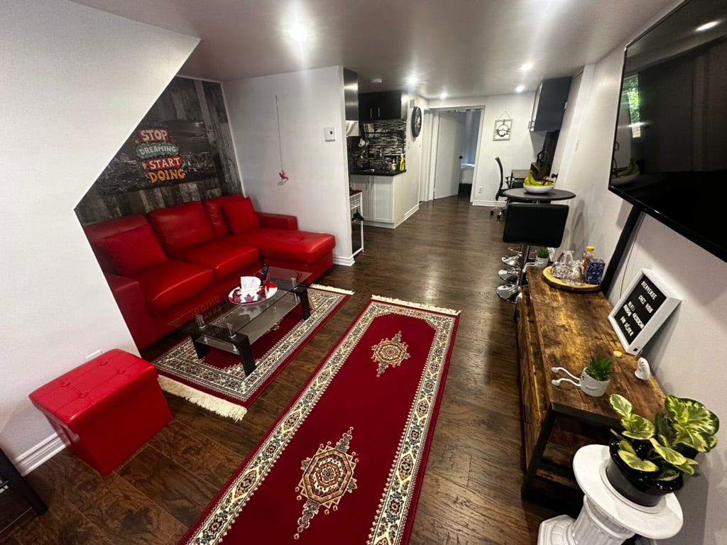 Bienvenue dans notre chaleureux sous-sol complétement rénové situé dans le quartier résidentiel Duvernay, Laval. Vous disposerez d’une entrée privative, de deux grandes chambres confortables, d'une salle de bains moderne, d'un coin salon, et d’une cuisine entièrement équipée. Situé à moins de 30 minutes du centre-ville de Montréal, 15 minutes de la place Bell, 7 min du Centre de la nature, 35 min du Mont St-Sauveur et 1 h 15 de Mont-Tremblant. Accès à tous les services à proximité.
