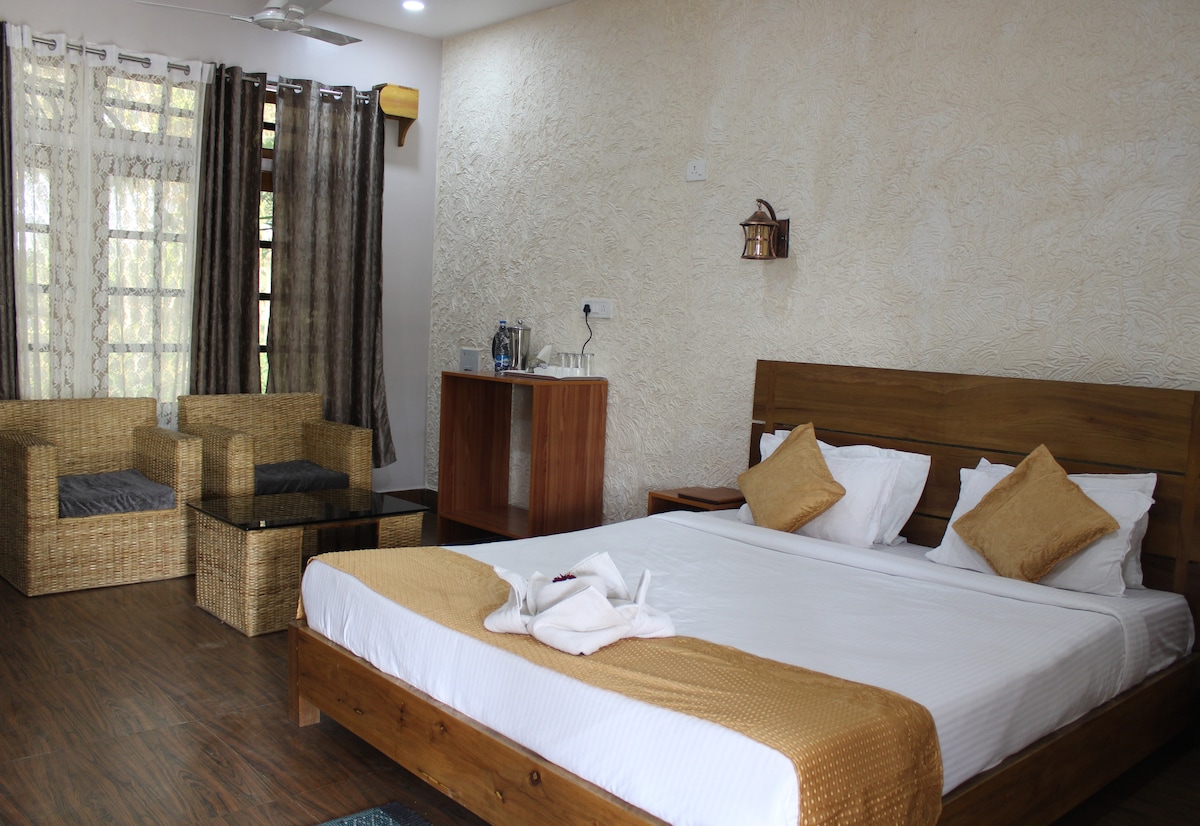 Family Room with Garden View - The Tea Garden View Cottages at Kanoka encapsulates the timeless allure of the village, with modern-day luxuries. Wake up to the aromatic scent of fresh tea leaves, enjoy a hand-brewed cup on your private porch, and watch as the gardens come alive with nature's dance. This cottage is a haven for tea lovers, nature enthusiasts, and anyone seeking solace in the lap of nature