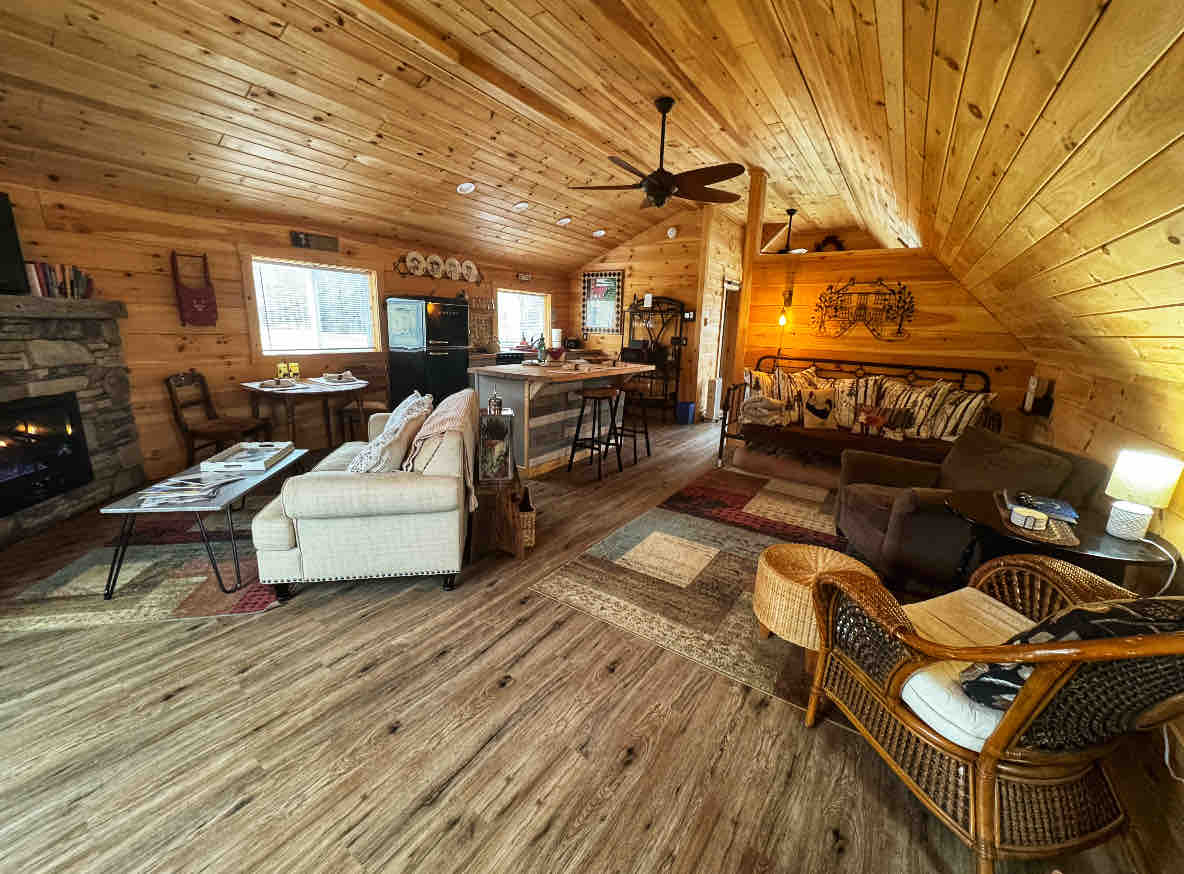 Nestled in the woods, our 3 bedroom cabin offers the perfect escape from the hustle and bustle of everyday life. The cozy interior features a warm, inviting atmosphere with all the amenities you need for a comfortable stay. The spacious living room is the perfect place to unwind after a long day of exploring the great outdoors, complete with a cozy fireplace and outdoor hot tub that offer stunning views of the surrounding landscape. Follow us on IG @thelittleredcabinny