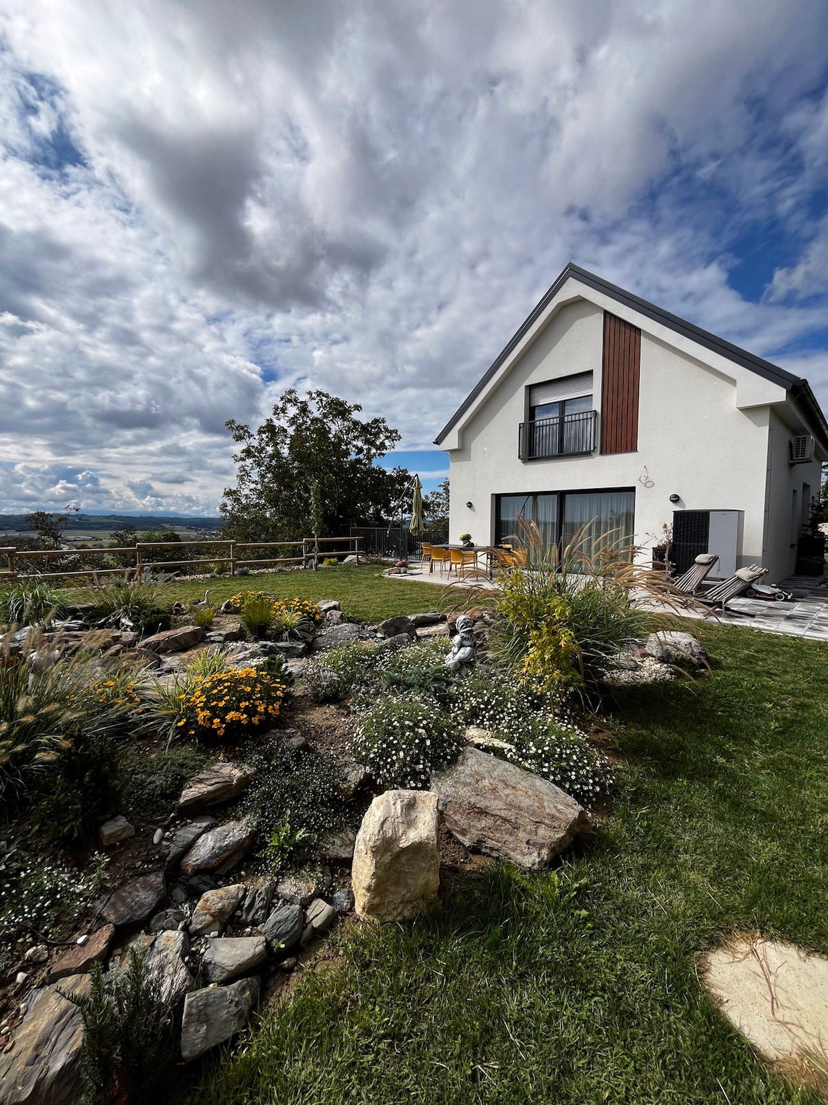 Unser Morillonhaus vereinen moderne Gemütlichkeit und stilvolles Design. Große Fensterfronten und eine überdachte Terrasse bringen die atemberaubende Natur direkt ins Haus. Entspanne im Hot Tub oder in der Sauna mit herrlichem Panoramablick, genieße ein Glas Wein und die perfekte Atmosphäre oder relaxe am Kamin im offenen Wohnbereich. Mit hochwertiger Ausstattung, Liebe zum Detail und absoluter Privatsphäre bieten die Häuser ein einzigartiges Flair, das du so schnell nicht vergessen wirst.