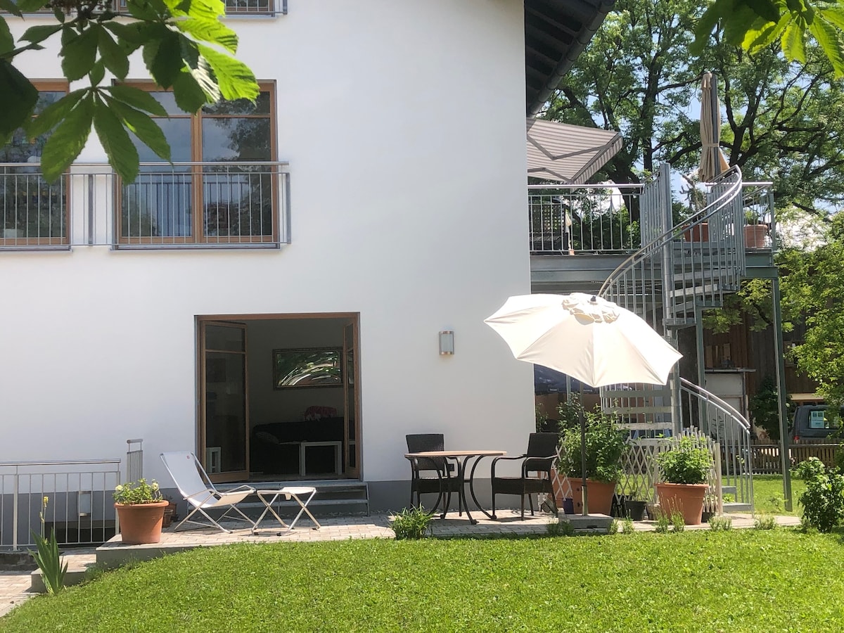 Comfortabele studio met balkon in het groen, ten zuiden van München