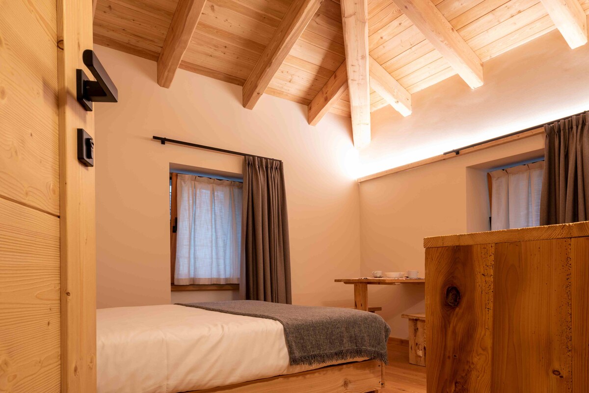 Barn1686 is located in the quiet village of Borgonovo, surrounded by stunning mountains. Originally built in 1686, the barn was fully renovated in 2015 and offers 90 m² of modern amenities: electric heating, a modern kitchen, two open bedrooms, two bathrooms, and a cozy fireplace. Need more space? Right next door is the second half of the semi-detached house – Ciäsa7406! Perfect for families or friends traveling together who still value their privacy.