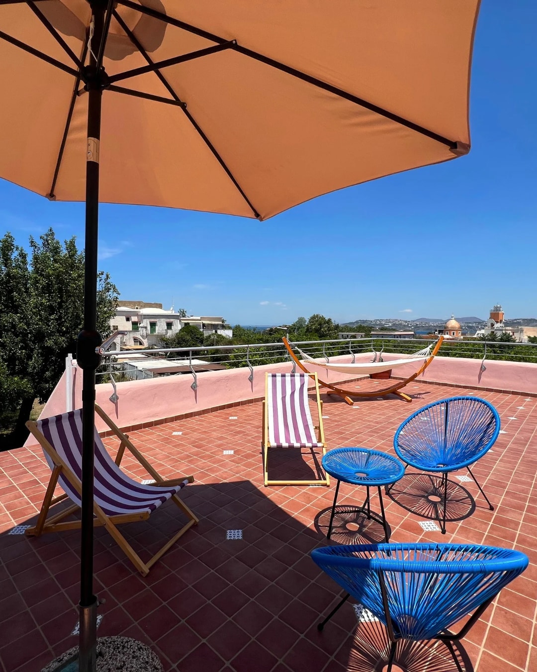 Vicky en Tarcisio wilden de B&B - Vi.Ta creëren voor hun sterke gevoel van welkom en voor het verlangen om de schoonheid van het eiland aan reizigers en nieuwsgierige toeristen te laten zien. Gelegen aan de prachtige baai van Chiaiozza De B&B is gelegen op slechts 300 m van de toeristische haven van Chiaiolella met zijn restaurants, winkels en de kust C. Colombo waar de stranden zijn gelegen. Maar liefhebbers van rust afdalen de rotsen onder het huis en de zee direct vanaf onze eigen afdaling.