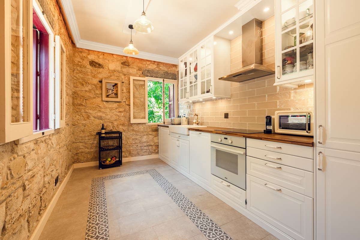 Villa Eleni is located in Pano Pachna village that is a center of many points of interest .From there you can reach by car easily and less than 30 min Limassol 33km, Paphos 50 km, Petra tou Romiou 27 km, Omodos 11 km , Platres 20 km, Avdimou Beach 23 km, and Troodos mountain 28km.Villa Eleni is a traditional village house of 180 m2 with 4 bedrooms (2 double beds, 4 single beds), 2 bathrooms, open plan kitchen, fire place,big living room with a dining table and it can host 8 persons.