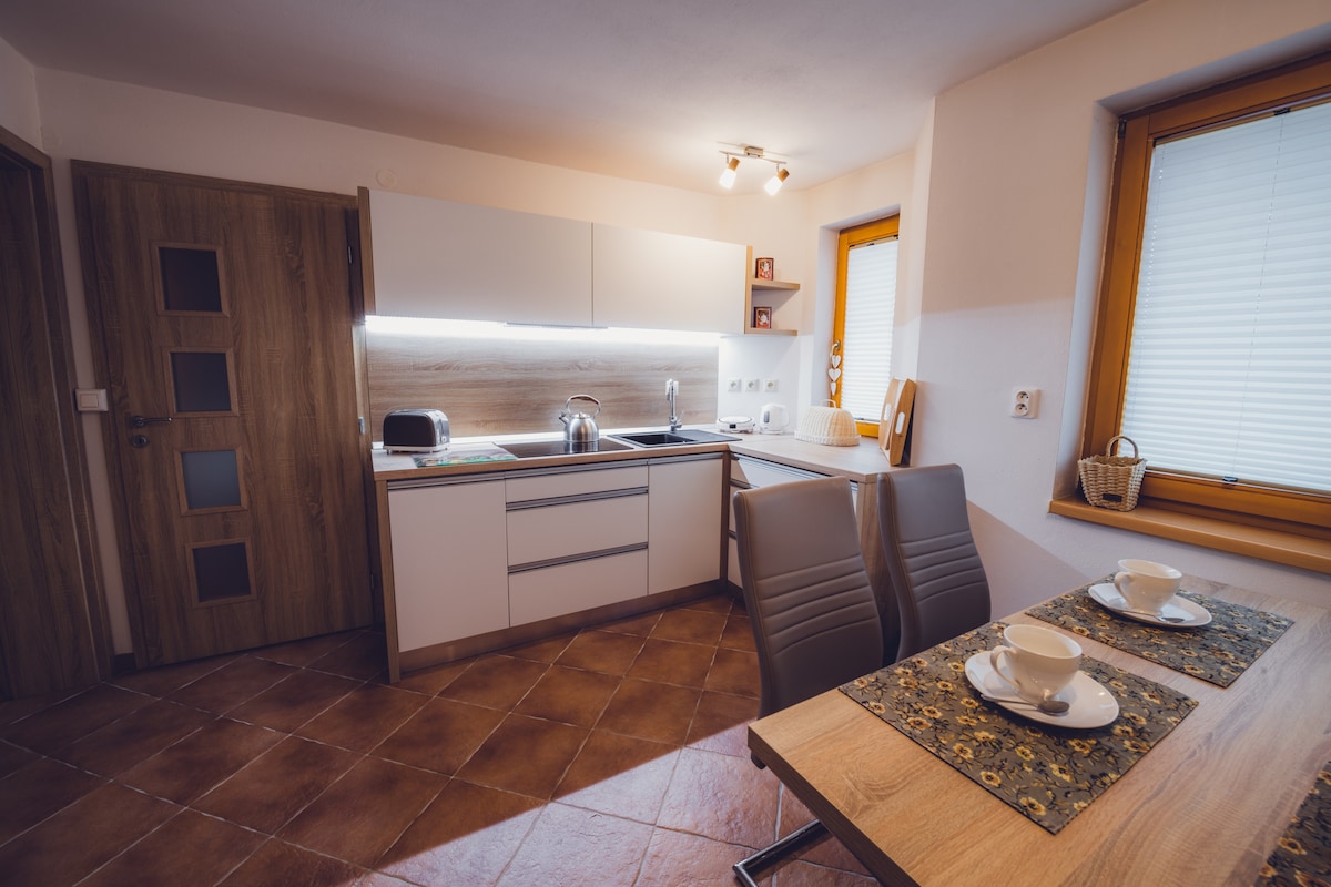 Apartmán je zložený z moderne zariadenej kuchyne, ktorá poskytuje komfort, pohodlie a príjemné posedenie pri veľkom stole, v obývacej izbe môžte relaxovať pri spoločenských hrách alebo príjemnom posedení s priateľmi, v spálni si oddýchnete v tichu, nikým a ničím nerušení.