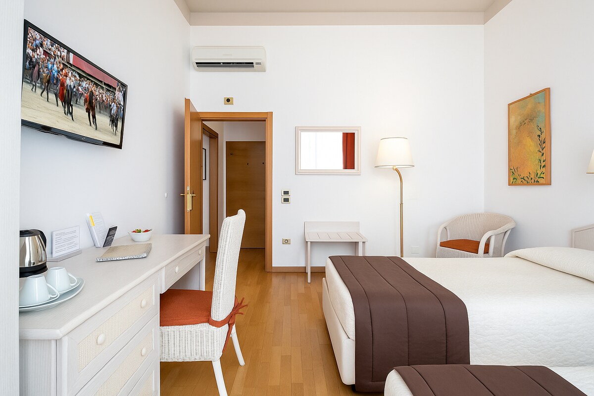 Onze periode residentie ligt in het hart van de stad, recht tegenover de doopkapel van Siena. Het is een historisch gebouw waar elke gast de geschiedenis van deze stad kan ademen, een echt mini-museum waar illustere figuren zoals Le Courbusier, Louis Khan, paus Alexander VIi en Francesco di Giorgio Martini verbleven