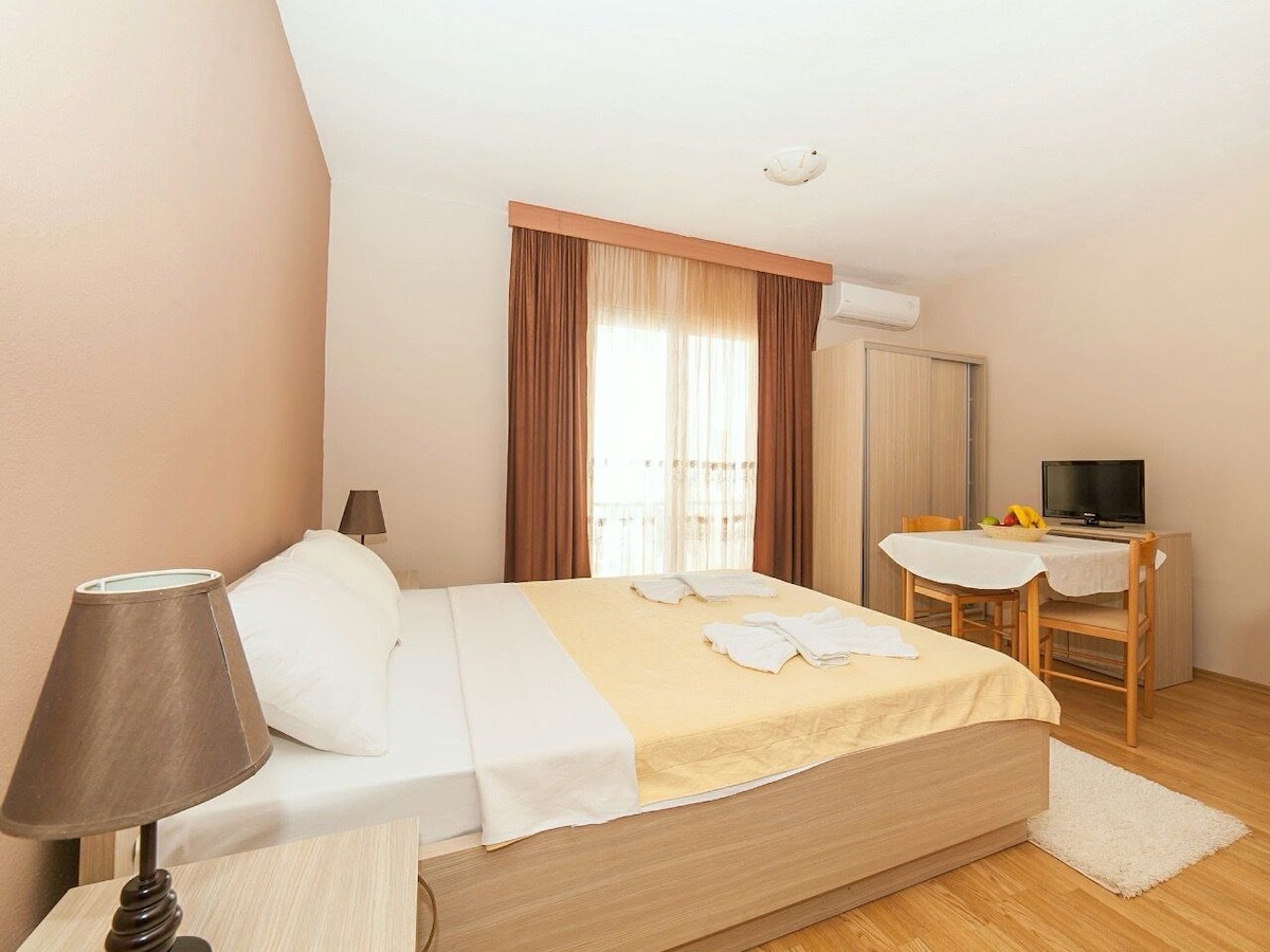 Welcome to our cozy 1-bedroom apartment in Pržno, Montenegro! With a queen-size bed and a comfortable sofa bed, it comfortably accommodates up to 4 guests. Prepare delicious home-cooked meals in the fully equipped kitchen. For those warm Montenegrin days, the apartment offers air conditioning, keeping you cool and comfortable during your stay. High-speed internet access is provided. Explore the stunning Adriatic coast and enjoy a relaxing stay in our well-equipped apartment.