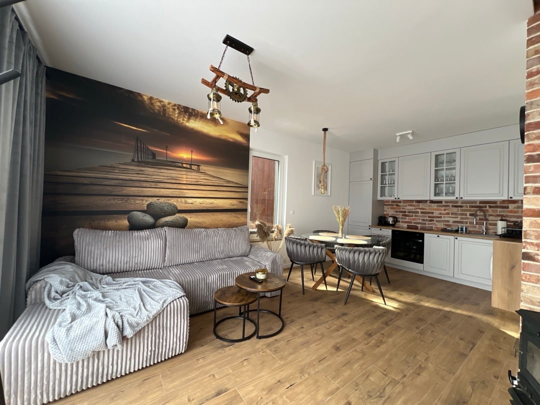 Domek apartamentowy typu de lux – 2 sypialnie, dostęp do jacuzzi, wyposażona kuchnia, spokojna okolica. Idealny dla 4 osób. Lokalizacja: Domek znajduje się w Jastrzębiej Górze, w spokojnej części – z dala od tłumów, a jednocześnie blisko do plaży (ok. 7 minut spacerem), sklepów i restauracji. Lokalizacja idealna!
