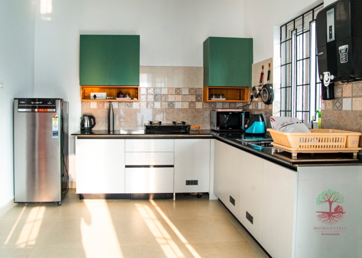 Als je op zoek bent naar een moderne 3-bhk villa met een privézwembad. Red Roots Villa, Moratandi is zo 'n woning in het dorp Auroville dat aan de rand van Pondicherry ligt. Je kunt genieten van een privézwembad, kamers met airconditioning, voldoende ruimte om te parkeren en een volledig uitgeruste keuken, een groot balkon om de avond rustig door te brengen plus een conciërge om te helpen indien nodig. Kom genieten van de diepgewortelde eenheid van Auroville, ver weg van de drukte van onze hectische levensstijl.