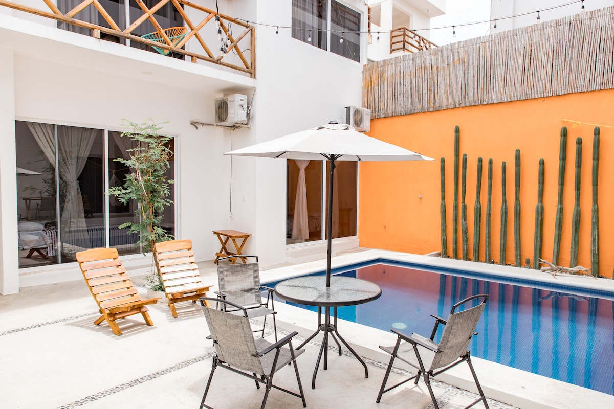 CASA DE AGUA op loopafstand van het strand + zwembad + airco + Starlink + keuken