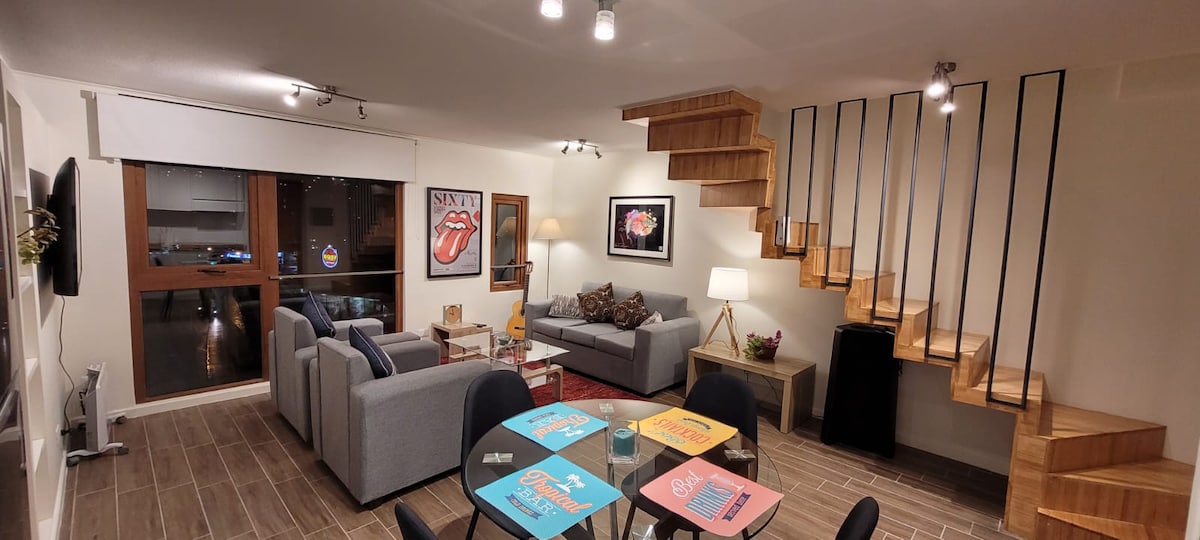 Ontspan in deze comfortabele, rustige en centrale ruimte in Puerto Montt. Tegenover de Jumbo-supermarkt op steenworp afstand van de Plaza de Armas, Mall Costanera en dicht bij alles. Ideaal voor groepen tot 6 personen. Duplex appartement (2 verdiepingen) met 3 slaapkamers en 2 badkamers, plus woonkamer, eetkamer en keuken. Kamer met Kingsize Bed (2 Personen). Tweede slaapkamer: een queensize bed (tweepersoonsbed). Derde slaapkamer: stapelbed of hut met 2 eenpersoonsbedden (twee personen). Inclusief parkeergelegenheid