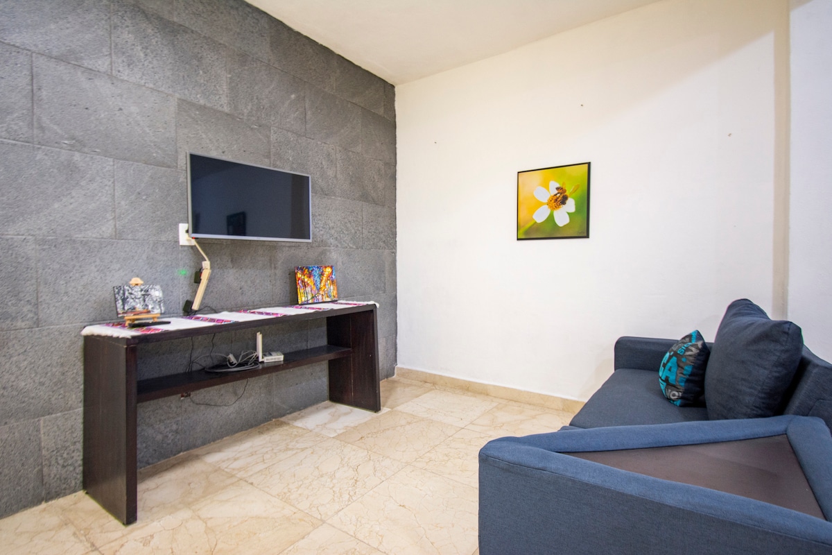 Disfruta de la sencillez de este alojamiento tranquilo alado del centro, caminando o en bici llegas a la playa, super mercados, colectivos a Cancún y Riviera Maya hasta Tulum., por ser un barrio popular, podría haber ruido de vendedores ambulantes, música de vecinos o algún desperfecto que reparar.