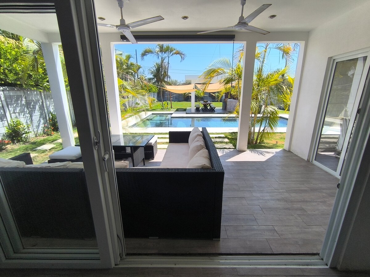 Strandhuis op 100 meter van de zee, met groot zwembad (11 meter lang) met vers water. **INCHECKEN 10.00 uur - UITCHECKEN 15.00uur** Slaapkamers met airco, uitgeruste keuken en privéparkeergelegenheid. Het huis is verspreid en wordt compleet geleverd met schone lakens en kussens. Het heeft geen ruimtes gedeeld met andere mensen. Weinig voertuigen kunnen zonder problemen naar binnen. Gelegen op 5 km weg naar Monterrico, het oversteken van de brug van Iztapa naar Monterrico.
