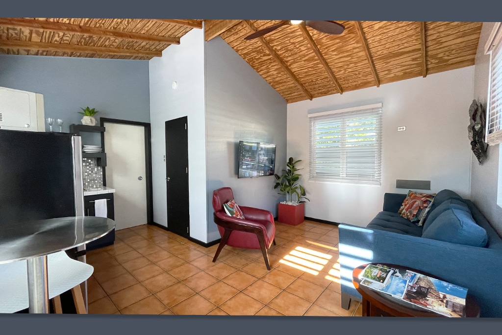 Ontspannende villa ideaal voor koppels, gelegen in het hart van de surfgemeenschap van Rincon. Deze onberispelijke studio heeft een comfortabel kingsize bed, een kustdecoratie en een licht, rustig interieur. Geniet van een ruime open woonkamer met comfortabele zitplaatsen, een ontspannende hangmat en een tropisch uitzicht, plus een eigen balkon en toegang tot een gedeeld buitenterras omgeven door weelderige tuinen. Op slechts enkele minuten van surfen van wereldklasse, zwemmen, snorkelen op stranden en zonsondergangen op zee en in de bergen.