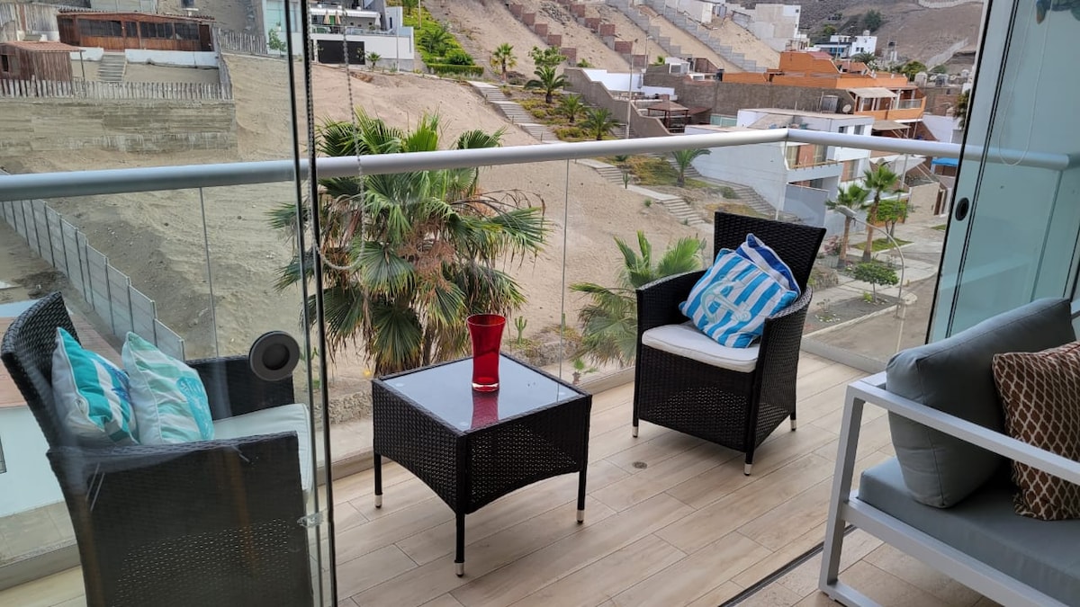 Prachtig huis met grote tuin, palmbomen en zwembad gemaakt van rotsen aan het water met directe toegang tot het strand, het hele huis kijkt uit op de zee. Het gebied heeft brede wegen om te wandelen , surfen, fietsen en hardlopen. Het heeft een zwembad voor gasten en een ruimte voor kampvuren en barbecues allemaal voor de zee. Het heeft de dichtstbijzijnde toegang tot San Bartolo voor verschillende voorzieningen .