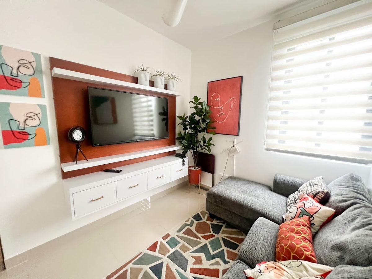 Dit nieuwe appartement is de plek die je zoekt om je comfortabel en ontspannen te voelen. Gelegen op slechts 10 minuten van de luchthaven van Santiago. Het is volledig ingericht met alles wat je nodig hebt, 3 slaapkamers, 2,5 badkamers, airconditioning in alle slaapkamers en de woonkamer. TV, gratis parkeren in het condo. In de omgeving kun je genieten van de gemeenschappelijke ruimtes zoals het kindergedeelte, voetbalveld, zwembaden, een natuurlijk meer, vergaderruimte. Er is 24/7 een beveiligingscheckpoint en bewakingscamera 's.