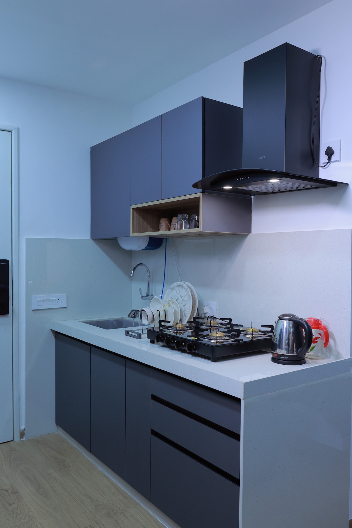 Dit is een volledig ingericht 2bhk service-appartement. Beide kamers zijn ingericht met een kingsize bed, nachtkastjes, kasten, studietafel en -stoel, airconditioning. De keuken is volledig uitgerust met alle nodige voorzieningen. Hal en eethoek is goed ingericht met eettafel en stoelen, slaapbank, theepoep, bijzettafel en andere meubels. Het heeft een grote smart led-tv in de hal. Deze accommodatie heeft een balkon in de hoofdkamer en een in de hal. Het heeft een geweldig uitzicht vanaf balkons.