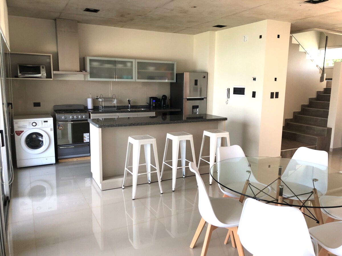 Appartement met 3 slaapkamers met voldoende geïntegreerde buitenruimte. Ik woonde in de natuur van de villa met een exclusief en uniek uitzicht in de omgeving. Gemeubileerde ruimte in eersteklas kwaliteit, allemaal nieuw tot februari 2022, terras uitgerust om te genieten van het buitenleven met grote grill. Groot zwembad, vuurplaats naast het meer, loungestoelen, fitnessruimte, waterverwarming. Twee overdekte garages, toegang tot de trap 3 minuten van de koekoek. 134m2 binnen en 56m2 buiten, gewoon uniek in Villa Carlos Paz.