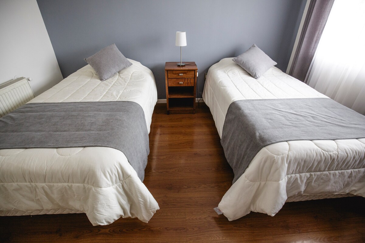 Somos un hostal que cuenta con 8 habitaciones, cada una con baño privado y desayuno incluido, wifi gratuito en todas las dependencias, TV cable y estacionamiento privado. Además contamos con un departamento totalmente amoblado con capacidad para 3 personas. Nos encontramos en pleno centro de la ciudad de Punta Arenas, muy cerca de la Plaza de Armas, Museos, Cerro de la Cruz, Costanera del Estrecho, Casino Dreams, bancos, casas de cambios, restaurantes, terminales de buses y locomoción pública.