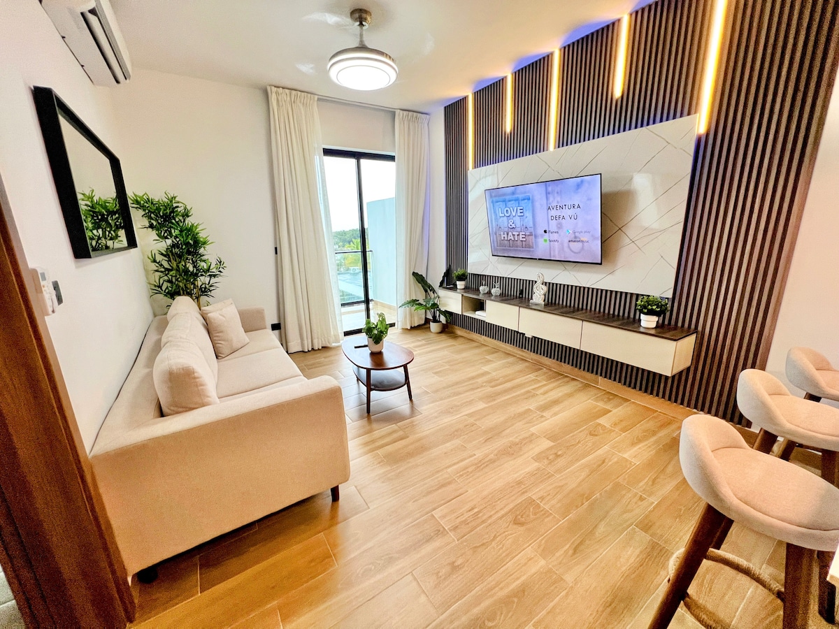 Het appartement is ideaal voor 2 volwassenen en 1 kind. Alle apparatuur is nieuw: queensize bed, bank in de woonkamer voor 1 kind of tiener, Smart TV, wifi/40 mbps, eetkamer, grote keuken, een comfortabele en ruime badkamer, kast, kluis, terras zeer dicht bij het zwembad. Het ligt in Punta Cana 's meest dynamische toeristische gebied op 500 meter van het strand. Er is een grote verscheidenheid aan restaurants, wisselkantoren en winkels. Elektriciteitsgebruik wordt betaald door de klant (US$ 0,44/kwh/kwh).