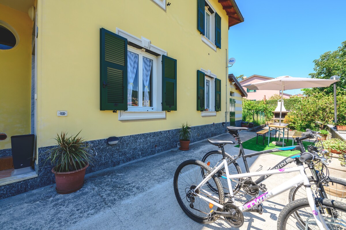 Luminoso appartamento con corte esterna a 250 m dalle spiagge di Riva Trigoso. Vicino agli hotspot turistici 5 terre, ideale per escursioni con partenza direttamente da casa. A 2 passi dalla famosa spiaggia della Baia del Silenzio e a pochi km da Portofino e 5 terre. Composto da soggiorno con angolo cottura (presente 1 divano letto 2 posti),camera matrimoniale,microonde, forno, lavatrice, lavastoviglie, Wi-Fi, bagno con doccia. Vengono messe a disposizione degli ospiti 2 city bike da adulto.
