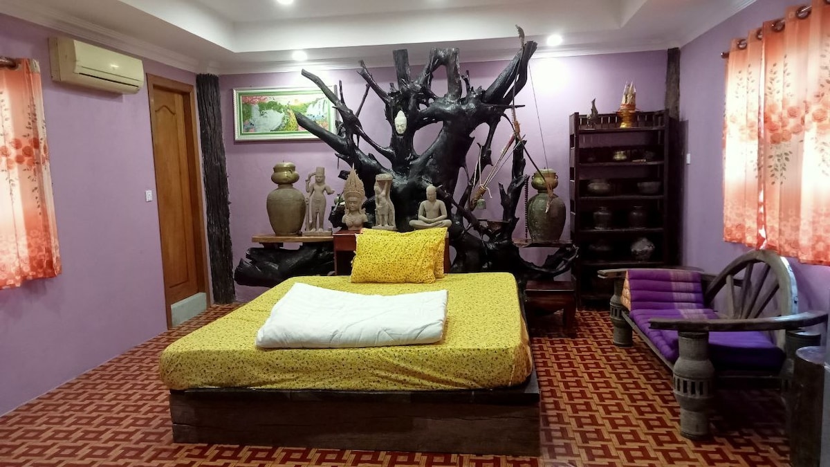 Maak het je gemakkelijk en geniet van veel extra ruimte op deze ruime plek. Breng het hele gezin naar deze geweldige plek met veel ruimte voor plezier. En ook gaan we je de goede prijs aanbieden, comfortabele kamers, gezond eten en hoe dan ook onze locatie is dicht bij de stad( Siem Reap City) En vooral in onze plaats hebben we andere diensten en kunnen we je ophalen bij de busstations, de luchthaven of als je interessant bent om de tempeltour te verkennen, kunnen we het voor je regelen