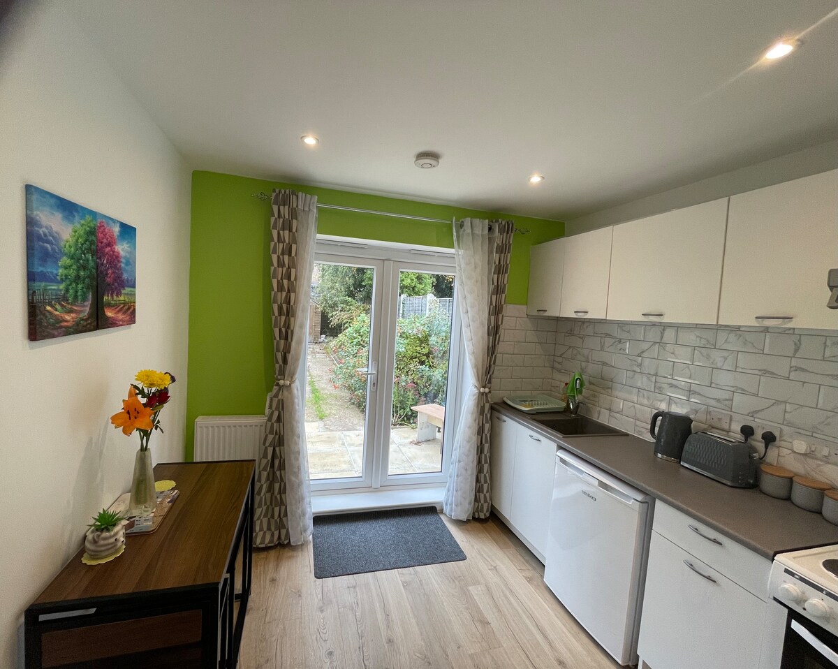 De studio heeft een eigen ingang via de gedeelde veranda en een aparte moderne doucheruimte en een aparte keuken. Het is uitgerust met een comfortabel tweepersoonsbed en een opvouwbaar eenpersoonsbed, dat ideaal is voor een gezin met drie personen. Als je met een baby reist, houd er dan rekening mee dat ik geen reiswieg heb. De bushalte is op 2 minuten afstand en brengt je binnen 10 minuten direct naar Poole. De co-op en lokale afhaalrestaurants zijn dichtbij. Totale oppervlakte: 33 vierkante meter