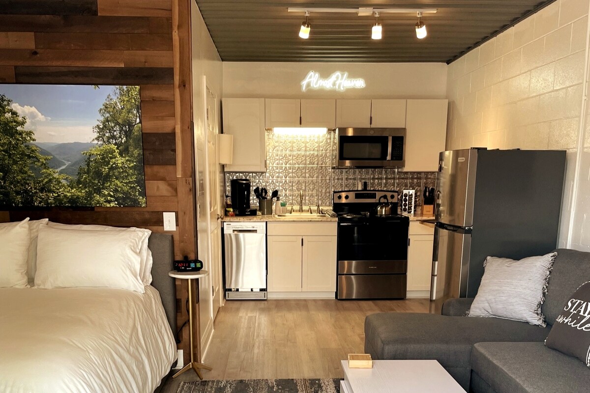 De Honeycup Home is gelegen op een felbegeerde plek, centraal gelegen tussen West Virginia State University en het Shawnee Sports Complex. De woning heeft een moderne, bohemien inrichting, met hoogwaardige, volledig gevulde ruimtes die je verblijf zeker luxueus zullen maken. Voor toegankelijkheid is de woning gelijkvloers en vrijstaand met een oprijplaat met een voordeur met dubbele beglazing. Beide bedden zijn geschikt voor maximaal 1000 pond en de hoogwaardige meubels in de hele woning bieden een hoge mate van ondersteuning.