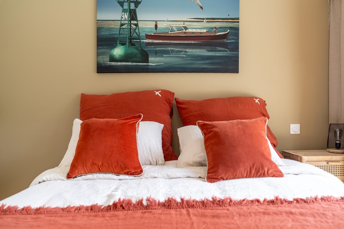 Droom je ervan om in een villa aan zee te verblijven? Je wordt verliefd op dit prachtige appartement , gelegen op de eerste verdieping van een grote villa aan het strand van Moulleau met een prachtig uitzicht op het Arcachon-bekken, met uitzicht op Cap Ferret. Onafhankelijke toegang, appartement van 90 m² en zoveel mogelijk terrassen. Kwaliteit van leven verzekerd. Een plek die we graag delen met vrienden en reizigers die net zoveel van het bassin houden als wij .