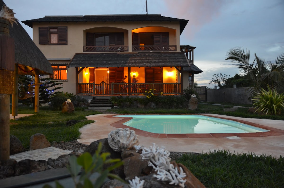 🏝️Welkom bij Mon Petit Coin de Paradis, een warme en uitnodigende villa aan het strand gelegen op een privéstrand in het prachtige Belle Mare, aan de oostkust van Mauritius. Alles hier is ontworpen om je thuis te laten voelen, met het extra comfort van persoonlijke aandacht — zelfgemaakte maaltijden en dagelijkse schoonmaak. Geniet van het ontspannen ritme van het eilandleven in een rustige en intieme omgeving.