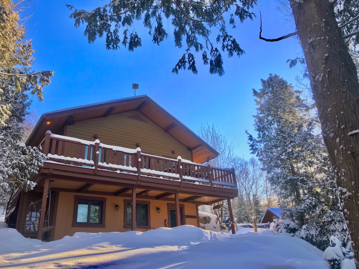 Beautiful log wood cottage with a cathedral roof and a wood stove, located right on the shores of Lac Desmarais in Estrie. The dock is the ideal spot for relaxing. The private lake is a protected area (no gas-powered motors allowed) and is brimming with trout and other species of fish each year. A paddle board, canoe and kayak will be at your disposal. The hot tub is available for use all year round. Starting January 2021 : 1 booking = 1 tree replanted through Tree Canada